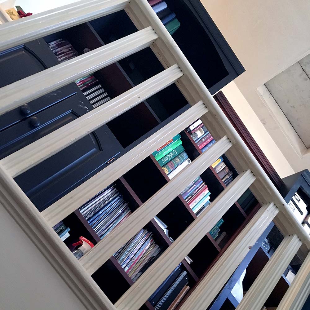 Mom, Dad, and I moved the bookcases upstairs and Mom has been filling them with all the books from throughout the house. She also plans to put a chair up there to sit and read. Secretly I think she’s doing it because she can’t stand the mismatched look of books on a shelf. She’d ban paperbacks if she could. (I tease her about this as she used to hide all the paperbacks away at my house when she’d clean over there.)