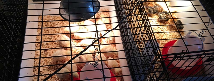 The meat chicks are on the left and the laying chicks are on the right. Next year we definitely need an outdoor brooder.
