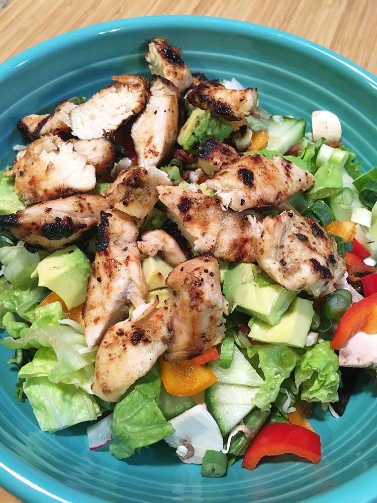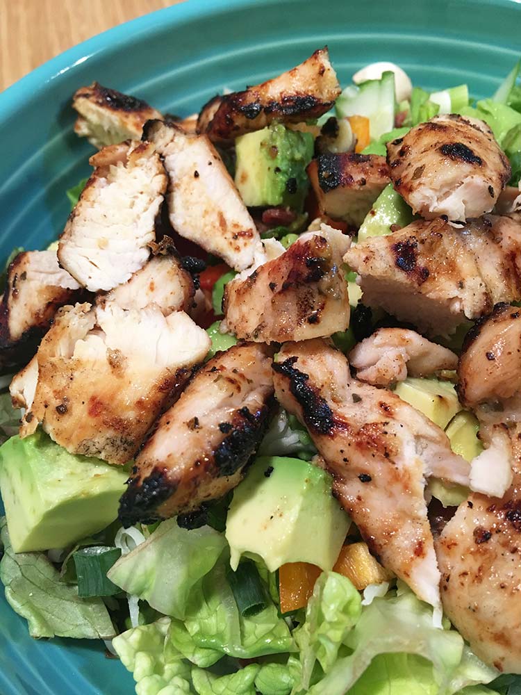 My preferred method to serve chicken like this is to cut it into strips then serve it atop a salad. It works perfectly well to serve with sides too. It’s a very versatile recipe and I hope you enjoy it!