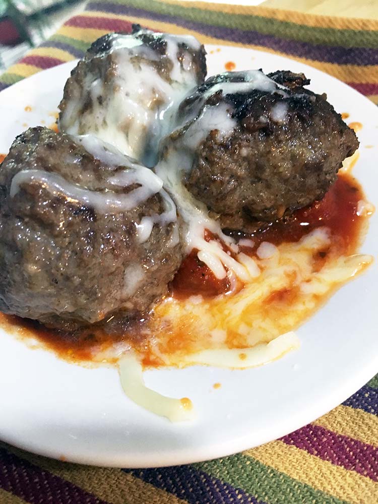 I served these with sauce and cheese as we were doing low–carb that week. What’s your favorite way to enjoy meatballs?