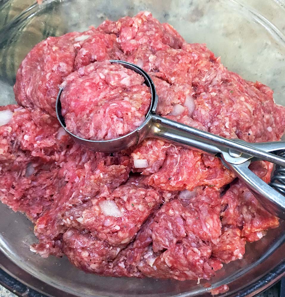 You can form them hand, but honestly, a scoop is so much easier. I use a 4 tablespoon scoop (the same one I use for muffins and cupcakes). This recipe made 32 meatballs.