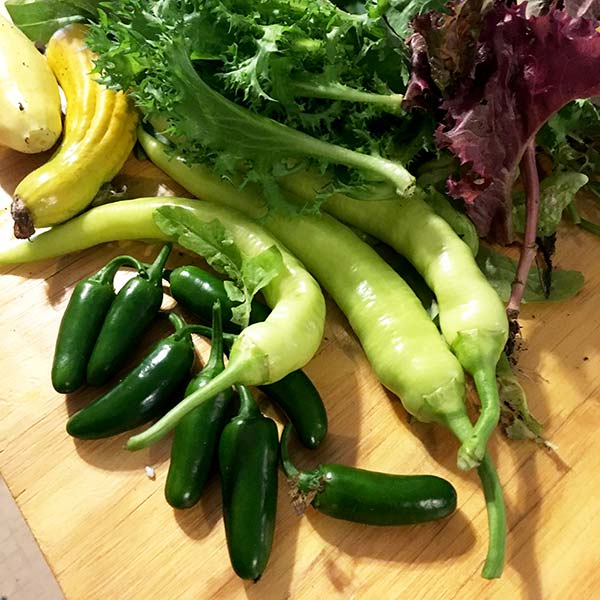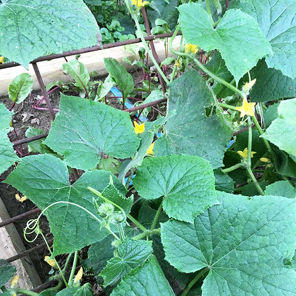 The garden is thriving pretty well–but I wish there were more things ready for harvest. The tomato plants are covered in fruit, but they are all still green. The cucumbers and squash are covered in blooms, but I’ve yet to see a cucumber and the squash are few and far between. Tons of honeybees out there pollinating though! The jalapenos have been pretty productive and I’ve been chopping them up and throwing them in the freezer for when the tomatoes are ripe. We didn’t can salsa last year and we are so ready for it. I’m trying to be patient though and just enjoying my daily walks through the plants. Next year I’m going to chance the frost and get everything out early.