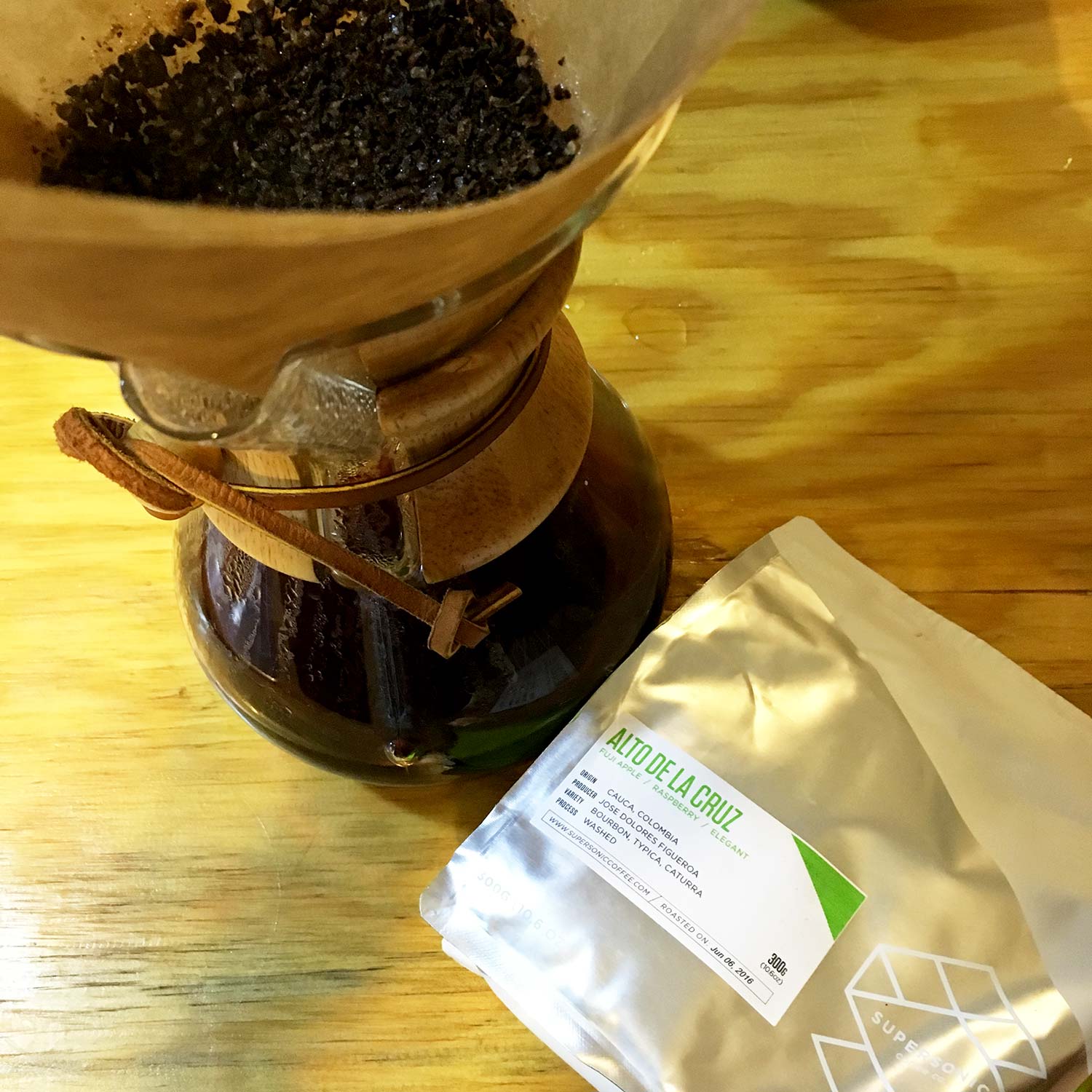The Alto De La Cruz originates from Cauca, Colombia. At the Supersonic website you can download “dossiers” for each of their coffees. The tasting notes say it should have the flavors of Fuji apple, raspberry, and elegant. I’m not sure how elegant is a flavor, but all right. The dossiers also have a short story about where the beans are grown.